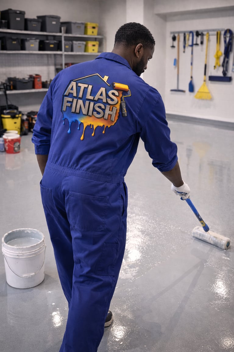 Durable garage floor coating that protects concrete from stains, cracks, and daily wear while giving your garage a clean modern look.